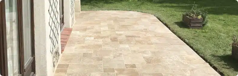 Opus Romain, grandes dalles ou pavés : découvrez les formats incontournables pour aménager une terrasse en travertin à la fois esthétique et adaptée à votre espace.