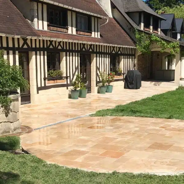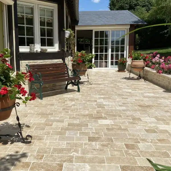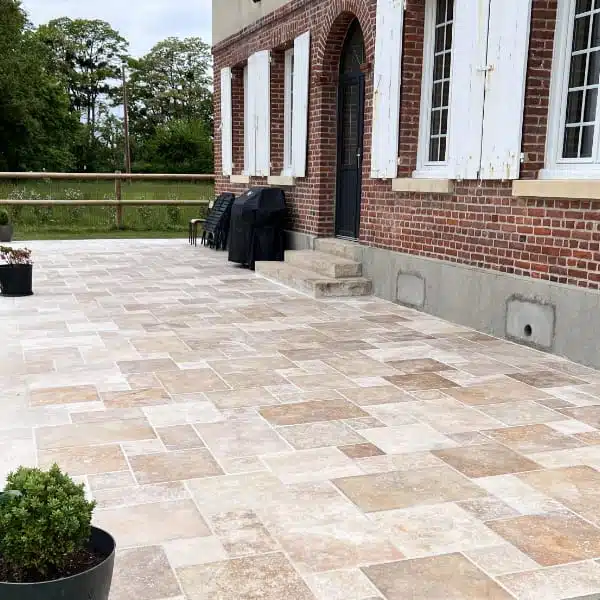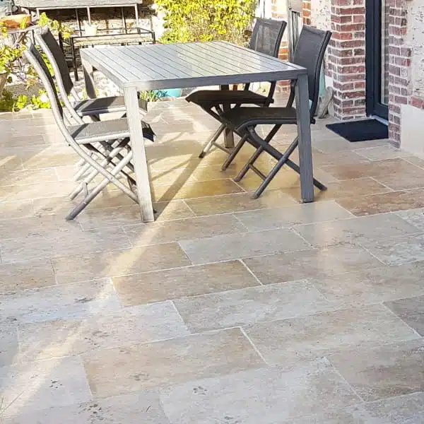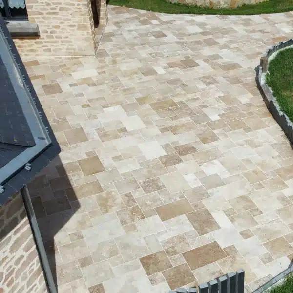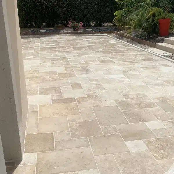 Opus Romain, grandes dalles ou pavés : découvrez les formats incontournables pour aménager une terrasse en travertin à la fois esthétique et adaptée à votre espace.