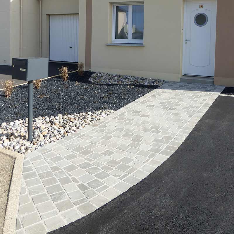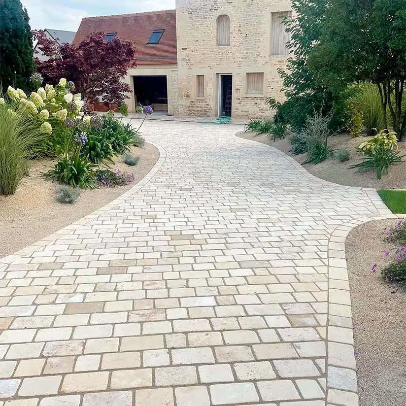Si votre allée dessert un garage ou une zone de stationnement, le dimensionnement de la pierre doit être adapté aux charges exercées.