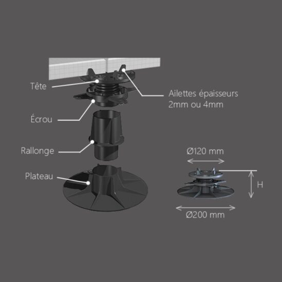 - Réhausse de plot R60 (Augmente la hauteur de 60mm, compatible avec les H70, H100 et H150)