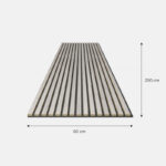 Les panneaux Pro sont dimensionnés en 60 x 250 cm, avec une épaisseur de 2,1 cm. Chaque panneau couvre une surface de 1,5 m². Malgré son appellation orientée vers un usage professionnel, le panneau tasseau bois blanc s’adapte parfaitement à une utilisation domestique. Les tasseaux ajoutent un attrait esthétique tout en assurant une absorption acoustique remarquable grâce à la feutrine de 8 mm d’épaisseur.