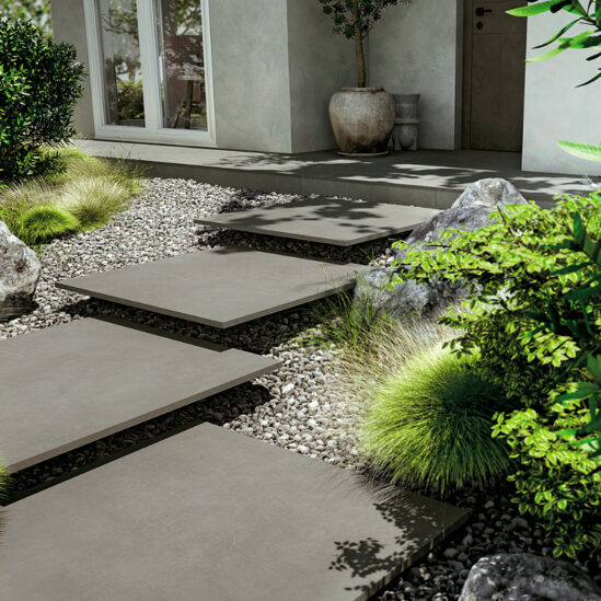 Carrelage grès cérame “Glocal Ideal” effet béton. Le “Glocal Ideal” est un carrelage qui imite les sols en béton, grâce à des nuances de gris chaud et de taupe, ainsi qu’un touché structuré. Il est également antidérapant extérieur classé R11, cela signifie que son adhérence est élevée et qu’il peut tout à fait être posé aux abords d’une piscine. Le grès cérame possède de nombreux avantages. En effet, il est résistant aux variations thermiques, à la casse, aux produits chimiques comme les sels de piscine, ou encore aux tâches. Que d’avantages donc pour ce matériau moderne et économique ! Disponible en dimension : 80 x 80 x ép. 2 cm, ses grands carreaux apportent un côté très moderne et original à n’importe quel projet d’aménagement.