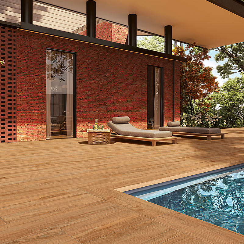 Découvrez notre carrelage grès cérame “Abéa Miel” effet bois et ses jolies nuances de caramel. C’est le carrelage le plus chaud de la gamme des “Abéa”. Ses teintes orangées et caramélisées réchaufferont votre espace extérieur et se marieront parfaitement avec un espace vert. Proposé en dimension : 30 x 120 x ép. 2 cm à la manière d’un parquet bois, ce carrelage imite à la perfection le veinage du bois, grâce à sa surface structurée. Le grès cérame possède de nombreux avantages ! C’est un matériau extrêmement résistant qui peut supporter jusqu’à 1 000 kg par carreau ! Il ne nécessite pas d’entretien, et est tout à fait adapté aux bords d’une piscine. Très contemporain, ce type de matériau est aujourd’hui devenu un incontournable de nos extérieurs grâce à ses déclinaisons de motifs et de teintes. Découvrez la gamme “Abéa” ainsi que le grès cérame “Abéa Miel” dans nos agences Pierre et Parquet !