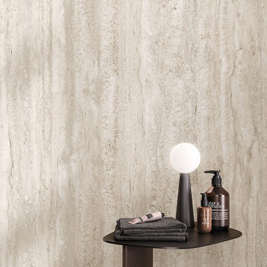 Le carrelage Travertino Light se pose aussi bien en intérieur qu’en extérieur. Si votre projet le permet, il est donc possible de créer une continuité entre salon et terrasse par exemple. Mais aussi, ce type de carrelage trouve parfaitement sa place dans les salles de bain.