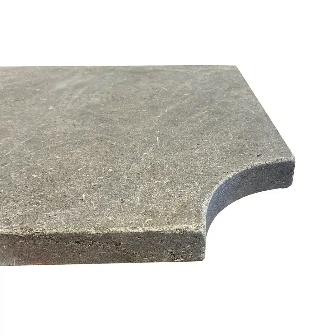 L’angle de margelle Argos gris vieilli s’associe au Dallage Argos Gris et à la Margelle de la même pierre.