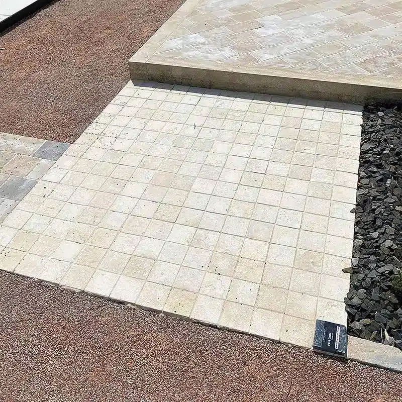 Ces pavés possèdent différentes nuances de beige clair et sont proposés en deux dimensions.