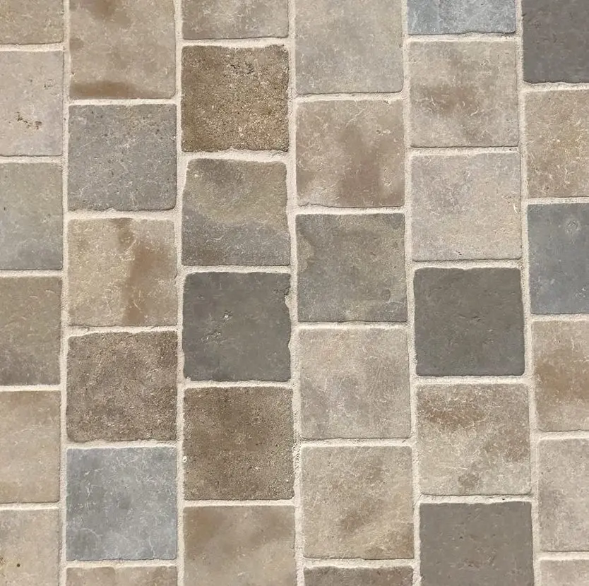Les Pavés Mera Bayard vieilli sont en pierre calcaire Mera. On y retrouve des nuances de beige, de marron, de gris, et d’ocre. Ces différentes nuances de couleurs s’accorderont parfaitement avec n’importe quel dallage en pierre naturelle.