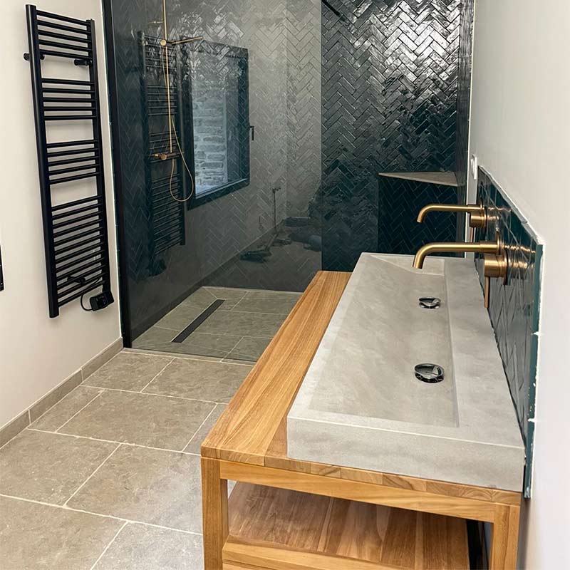 Proposé en deux dimensions : 40 x LL x ép. 1,5 cm ou en OPUS 40 x ép. 1,5 cm, ce dallage est également disponible sous la forme du Dallage Argos gris – vieilli.
