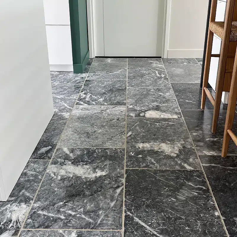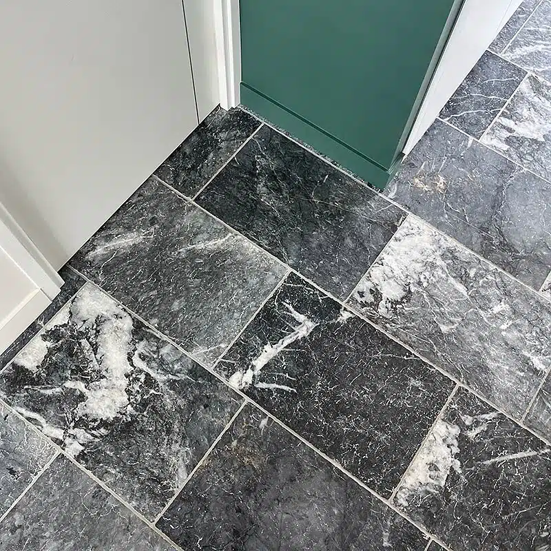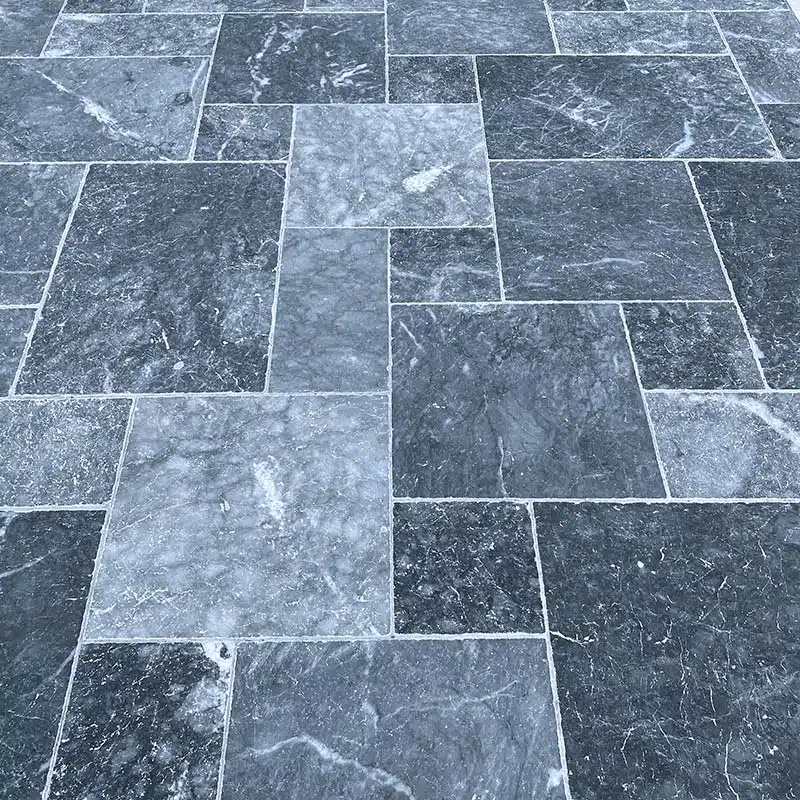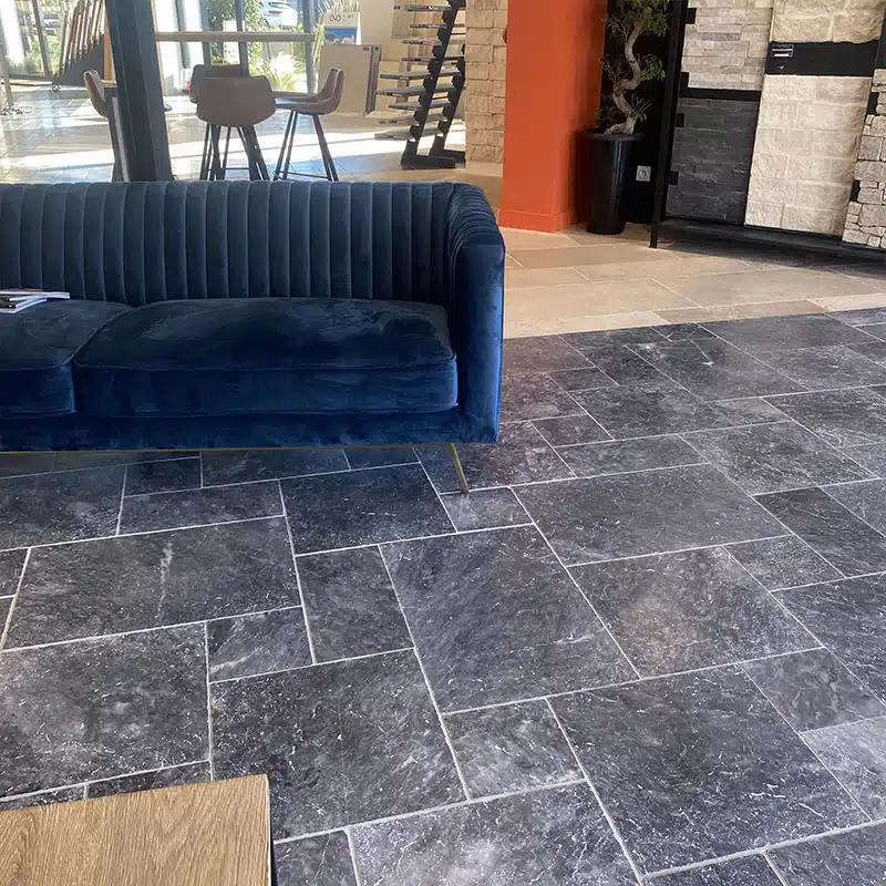 Découvrez notre dallage en Pierre bleue “Alia” ! Le dallage Pierre Bleue Alia convient à la pose intérieure ou extérieure. La Pierre Bleue possède des nuances de gris bleuté et des marbrures de blanc. Sa finition anthic rend ses angles légèrement arrondis et sa surface lisse.