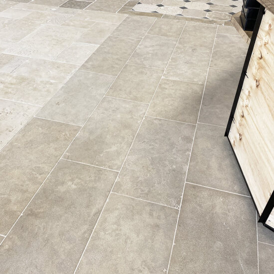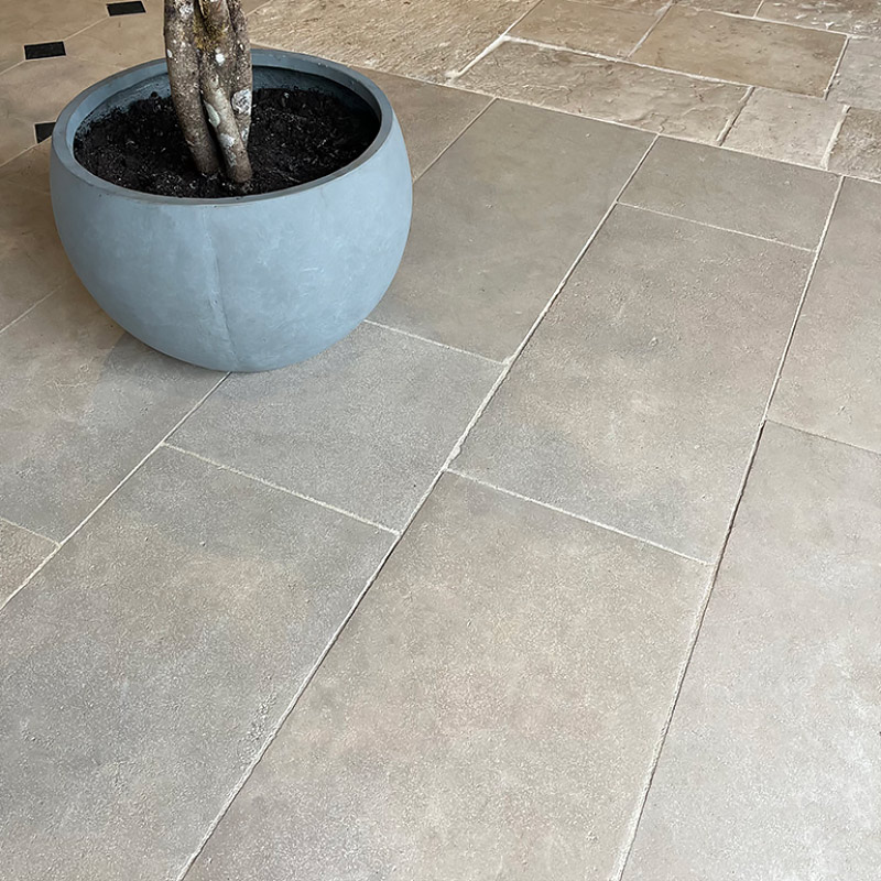 Découvrez notre dallage “Patrimoine” patiné. En pierre calcaire, ce dallage est légèrement vieilli, ce qui lui apporte cachet et authenticité. De couleur beige, ses nuances douces et chaleureuses conviennent à la fois en intérieur dans une pièce de vie et en extérieur. pour une terrasse. Le dallage Patrimoine patiné peut également convenir à la pose murale, dans une salle de bain dans une douche par exemple. Disponible en deux dimensions, il possède des longueurs variables (ou longueurs libres) mais une épaisseur fixe. On le retrouve donc au format : 25 x LL x ép. 1,8 cm ou 40,6 x LL x ép. 1,8 cm.