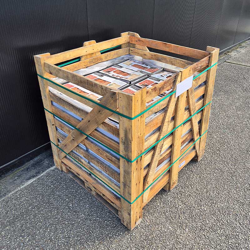 - Une palette pèse 891kg, se compose de 99 colis, soit 2080 briques, pour une surface de 32 m².