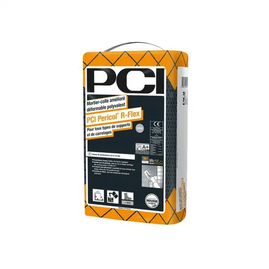 Colle à carrelage PCI Pericol-flex compatible avec les planchers chauffants, convient à un usage intérieur comme extérieur. Ce mortier-colle est idéal pour la pose de carrelage en grès cérame et de dallage en pierre naturelle. Disponible en coloris blanc ou gris.